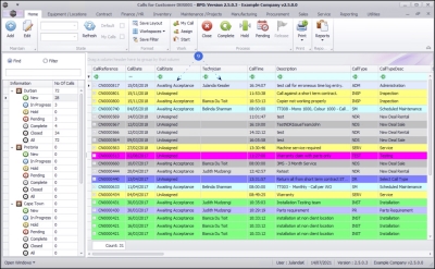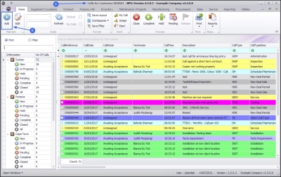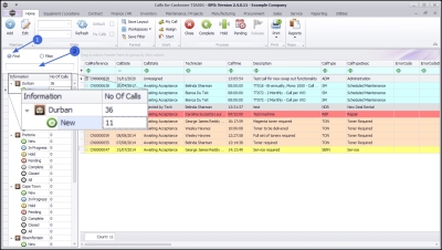 - The Calls are colour-coded by Call Type, e.g. all Service Calls are displayed as yellow.