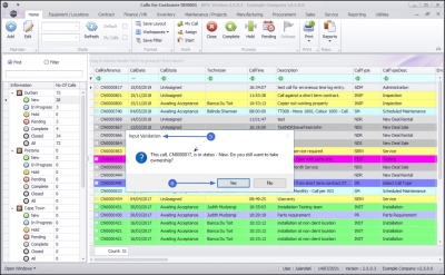 - The call has now been updated with the name of the Technician currently logged on to the system and the Call Status has changed to Awaiting Acceptance.