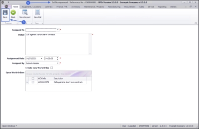 - The Call Assignment: Reference No: [call ref number] screen will be displayed.
