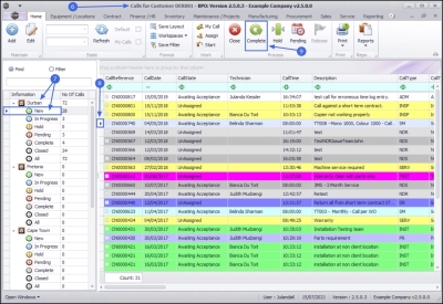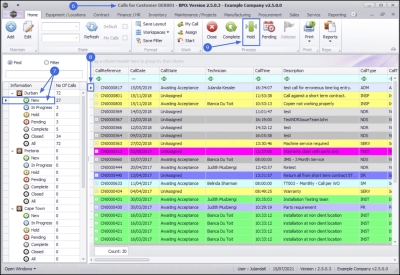 Any changes that you may have made to the Calls for Customer screen e.g. changing the column order or resizing columns, will return to the original layout when you exit the screen. By clicking on Save Layout, Workspaces or Save Filter in the Format panel, will save your settings for the next time you select a customer and open this screen.