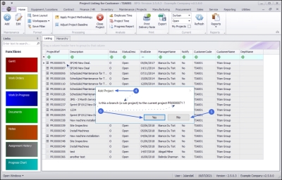 - Click on Yes if you are creating a sub project for the selected project.