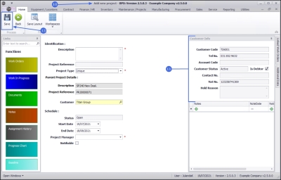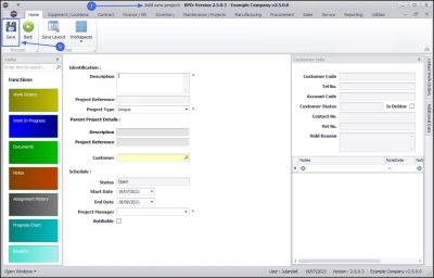 - Make the required changes to the project identification information or use the Functions tiles to link Work Order or Documents to the project.