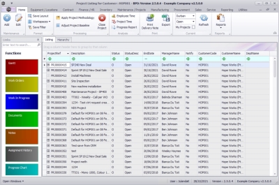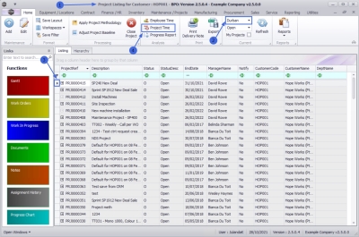 - The Project Listing for Customer: [customer code] screen will be displayed.