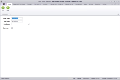 This process allows the Project Leader or Manager the facility to generate a Project Time Report that will list time logged against the project for each employee and work order.