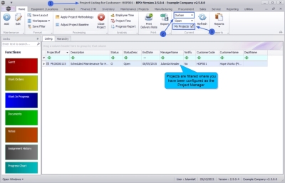 - The projects will be filtered by the projects that have you assigned as the Project Manager (the person currently logged onto the system).