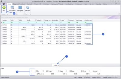 All transactions that are processed on the Customer Account, such as Contract Invoices, Credit Notes, Journal Adjustments, and other payments, whether being processed directly within BPO or Sage Evolution, will reflect in the Journals tile.
