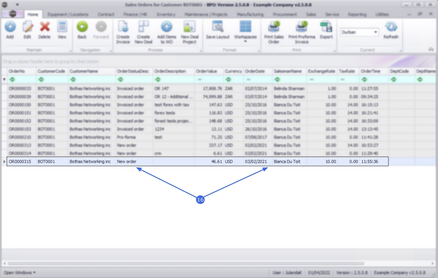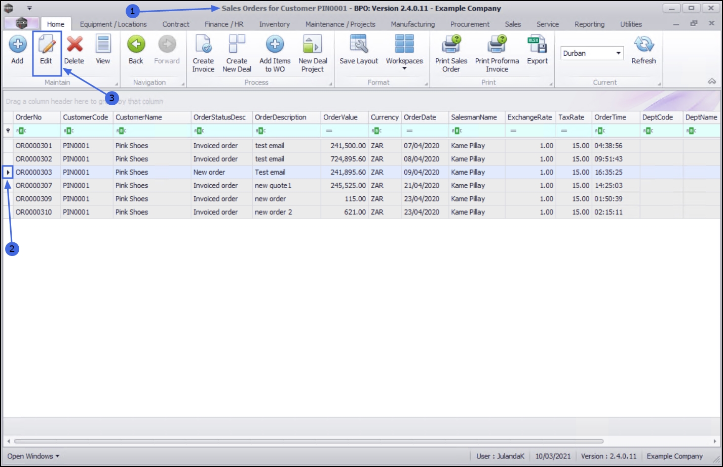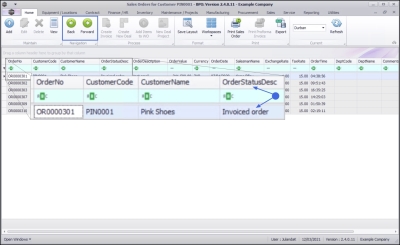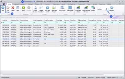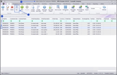 1. From the Sales Orders for Customer [Customer Code] listing screen,