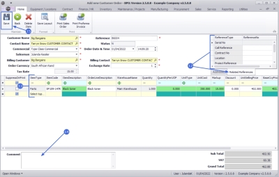 1. Click on the Related References tab to link the reference information for the customer Order.