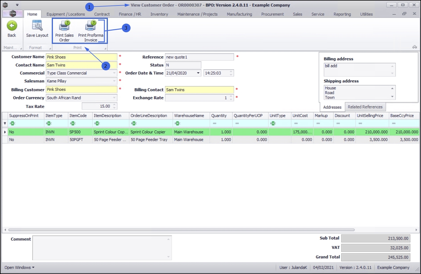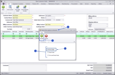 • You will be able to Print a Sales Order and / or Print a Proforma Invoice from the;
