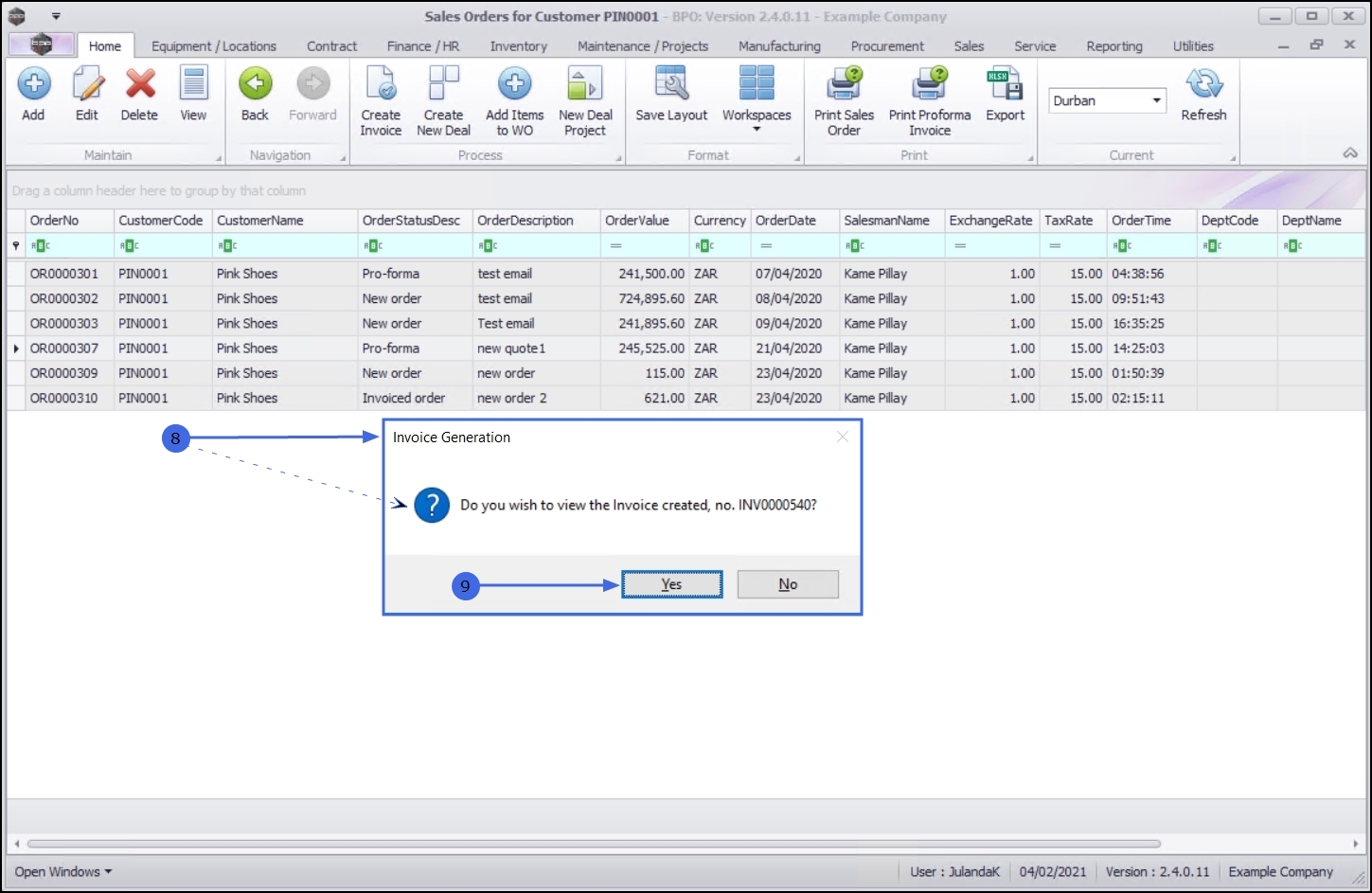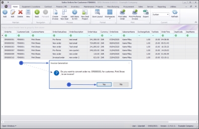 • Do you want to convert order no. [order number], for customer, [customer code], to an invoice?