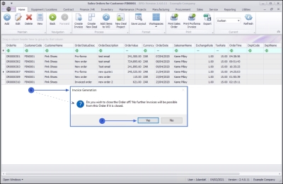 • Do you wish to close the Order off? No further Invoices will be possible from this Order if it is closed.