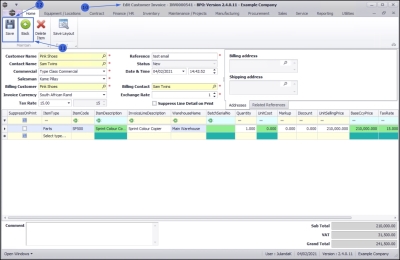 1. The Edit Customer Invoice screen will display where you can view or make changes to the Invoice, if required.