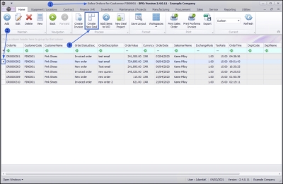 1. From the Sales Orders for Customer: [Customer Code] listing screen