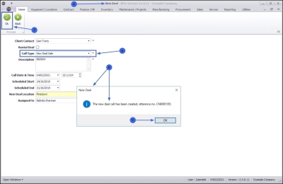 3. The Call Type field enables you to distinguish if this order is a New Deal Sale or New Deal Rental.