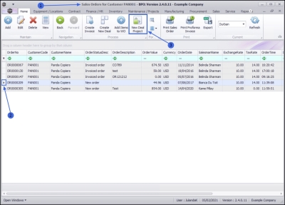2. Click on the row of the Sales Order you wish to convert to a New Deal Project.