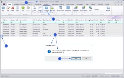 The Add Items to WO function is only valid where the Customer Order has been linked to an existing Work Order.