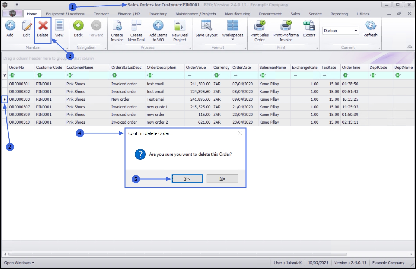 5. If you are sure that this is the correct order that needs to be removed, then click on Yes to proceed.