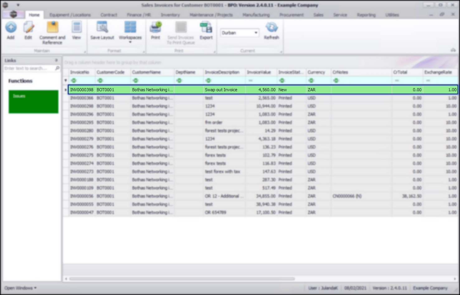 - From the Sales Invoices for Customer [customer code] screen,