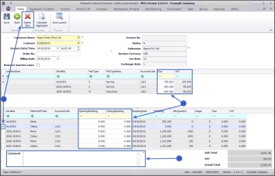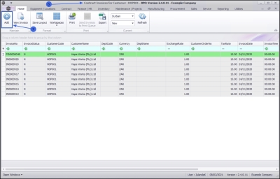 1. Click on Save to save the new Manual Contract and to return to the Contract Invoices for Customer screen.