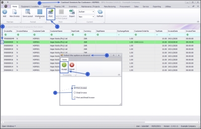 • You can send Invoices to the Print Queue directly from the Contract Invoices for Customer [customer code] listing screen, instead of going to the Print Queue Reprint screen. This means that a batch of invoices can be send to the customer.