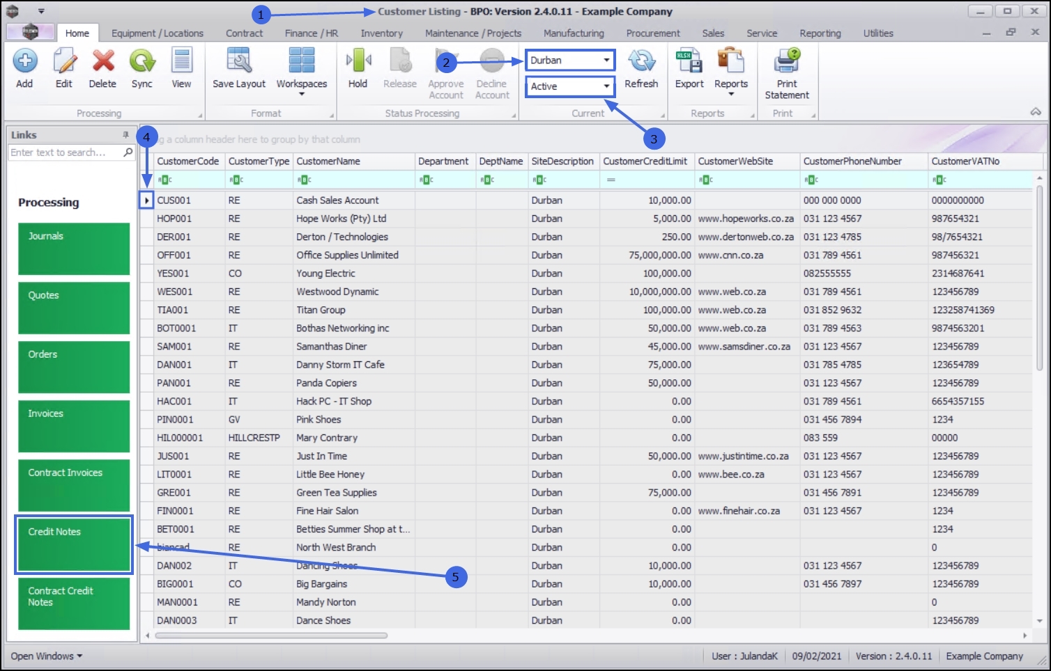 | Ribbon Access: Sales > Customers |