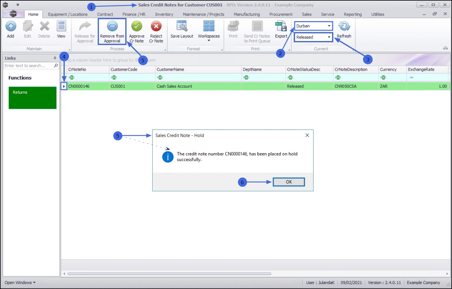 - Releasing Credit Note for Approval / Removing Credit Note from Approval