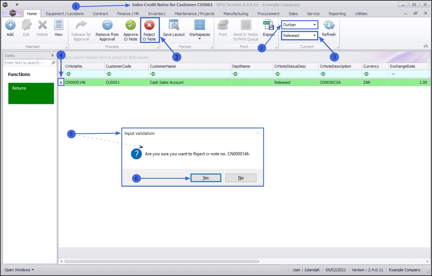 - Click on Reject Cr Note.