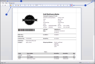 - The Call Delivery Note for the Call will be displayed in the Preview window.