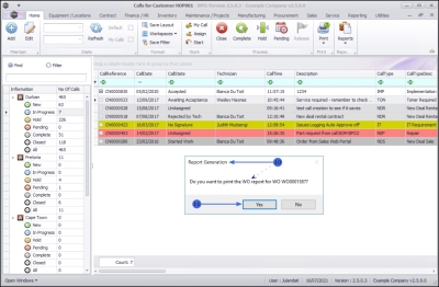 3. Click on the row of the Call you wish to print the work order report for.