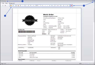 2. You can make cosmetic adjustments to the report, as well as Save, Zoom, Add a Watermark, Export or Email.