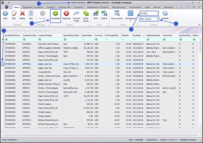 - The Sales Quotes listing screen will be filtered using the Customer Accepted Status selection.