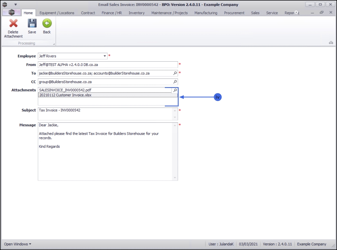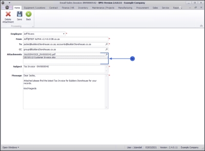 • Email Invoice  will attach documents, add recipients, the system will create a .pdf and email the Invoice.