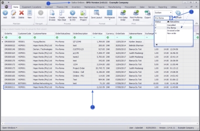 - The sales order that you have printed will no longer be available in the New order Status. Change the Status to Pro-forma.