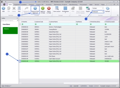 The selected credit note can now be viewed on the Sales Credit Notes listing screen where the Status has been set to New.