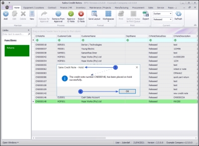 - The credit note number CN[credit note number] has been placed on hold successfully.