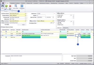 - The Edit Customer Credit Note - CN[credit note number] screen will be displayed.