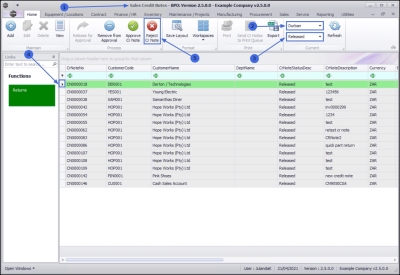 The rejected credit note can now be viewed in the Sales Credit Notes listing screen, where the Status is set to Declined.