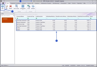 - From here you can view a list of all your sales commercials with the default mark ups that have already been created.