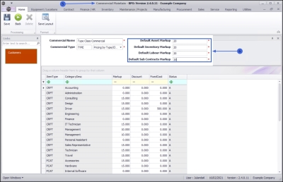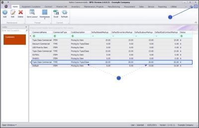 - This screen will display a list of all the sales commercials and the current default mark ups specified.