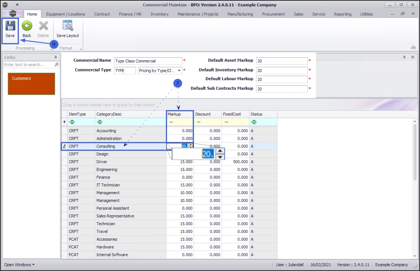- For the purpose of this manual, the Consulting Fee has been adjusted in the Markup column, from 15 percent to 20 percent.