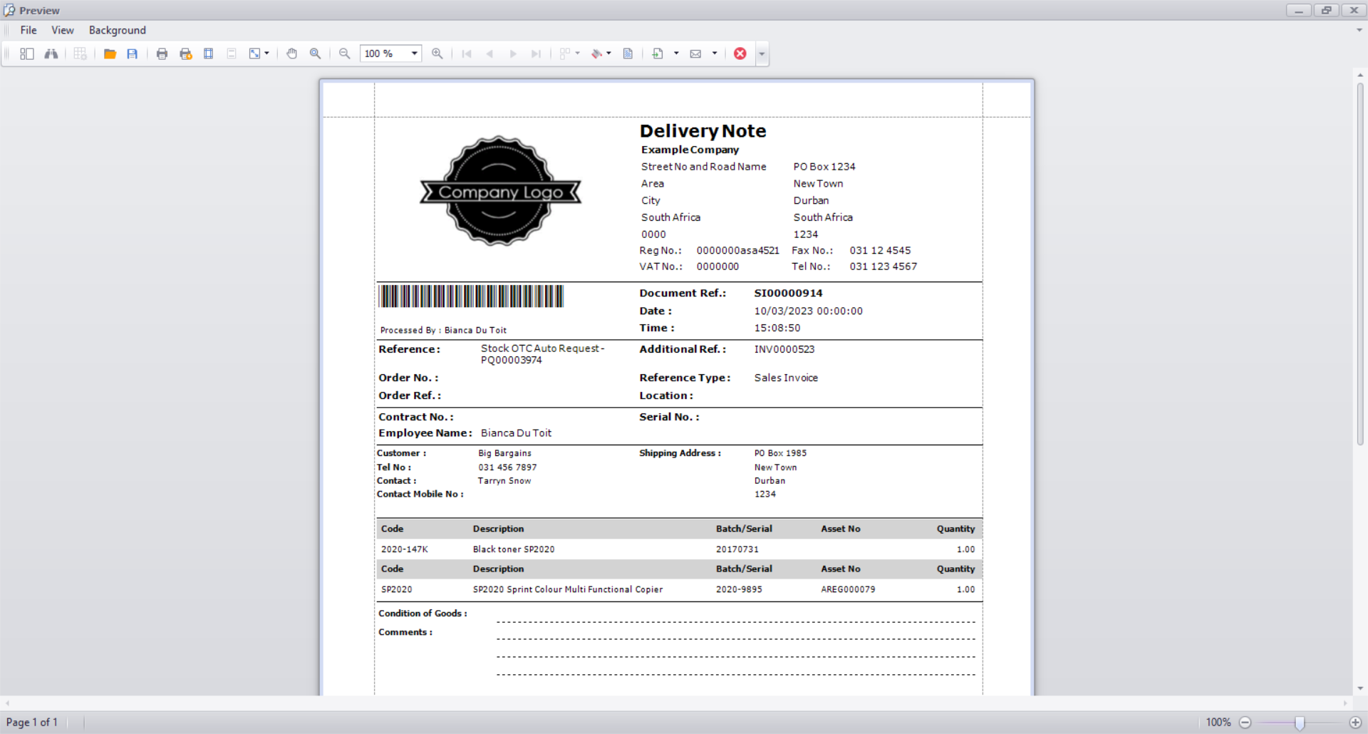 Delivery Note Preview