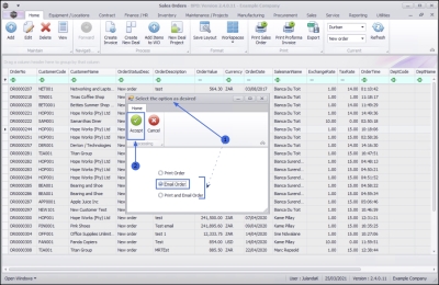 When using the Email option to send a Sales Order, please note that it will be mailed via the BPO Email Service on the server and not from your own MS Outlook.
