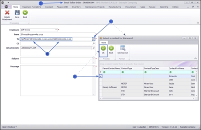 3. To add an additional contact person, click on the search button to select and add the contact to the email. The second email address will be separated with a [;], e.g. mjefferson@hopeworks.co.za; accounts@hopeworks.co.za.