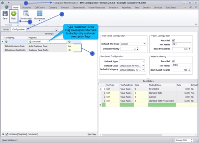 3. Type "customer" in the Flag Description to display the Auto Customer Code and Customer Code Prefix flag values.