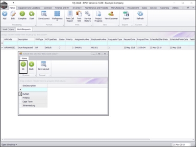 - Click on the row selector in front of the site that you wish to link to this work request.