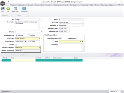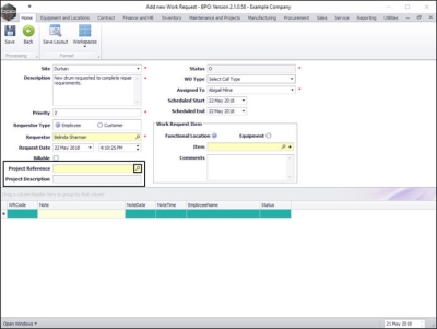 - Project Description: This will now be populated with the description relating to the selected project reference number.