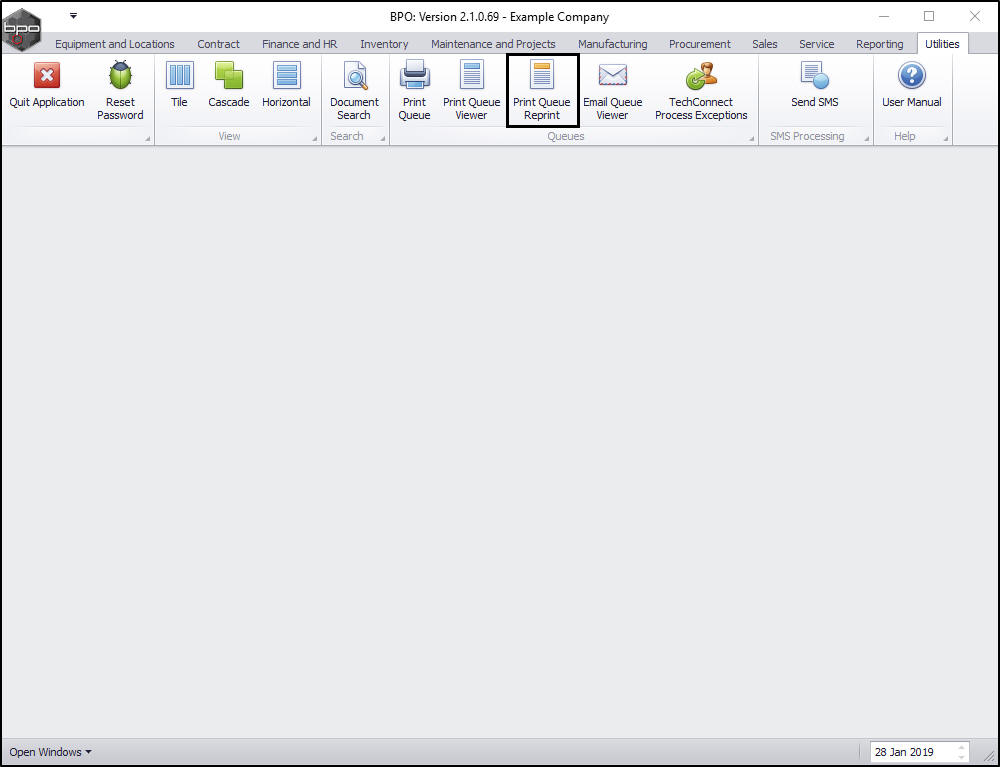 | Ribbon Access: Utilities > Print Queue Reprint |