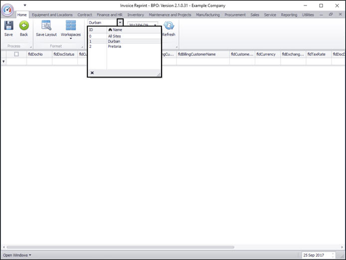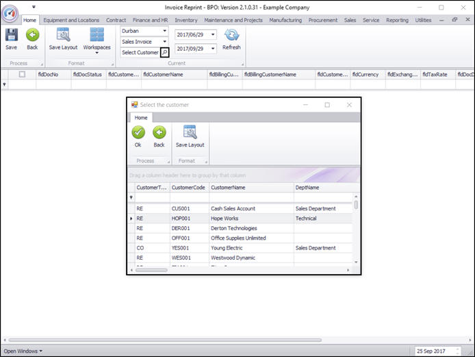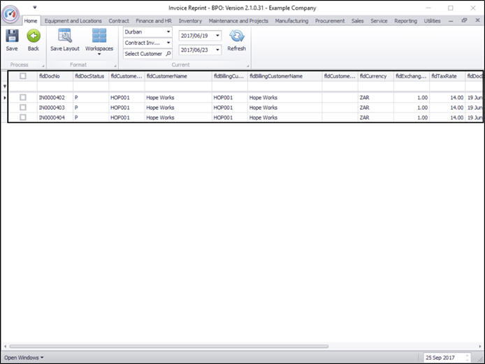The Invoice Reprint screen will be displayed.