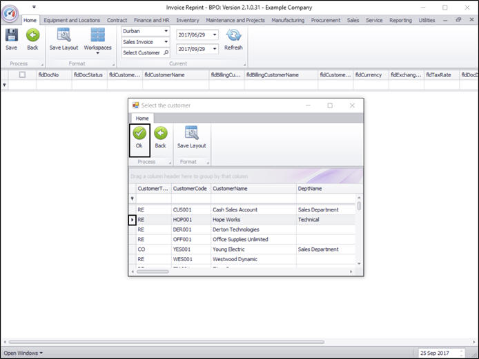 - The Select the customer screen will pop up..