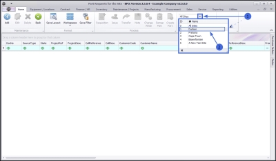 - In the Part Requests for the Site screen, note that the Site filter is set to a named Site (Example 2 above).